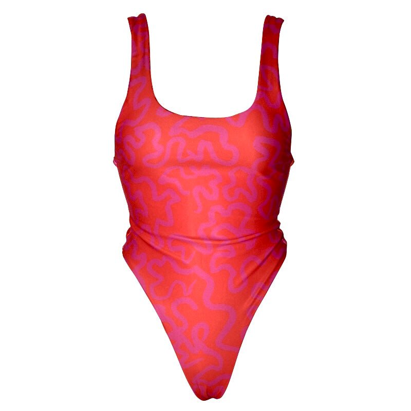 This 80's style print and cut will have you begging for more! high cut, so it sits above your hips with a cheeky g-string like cut on the bottom, flattering for everyone!