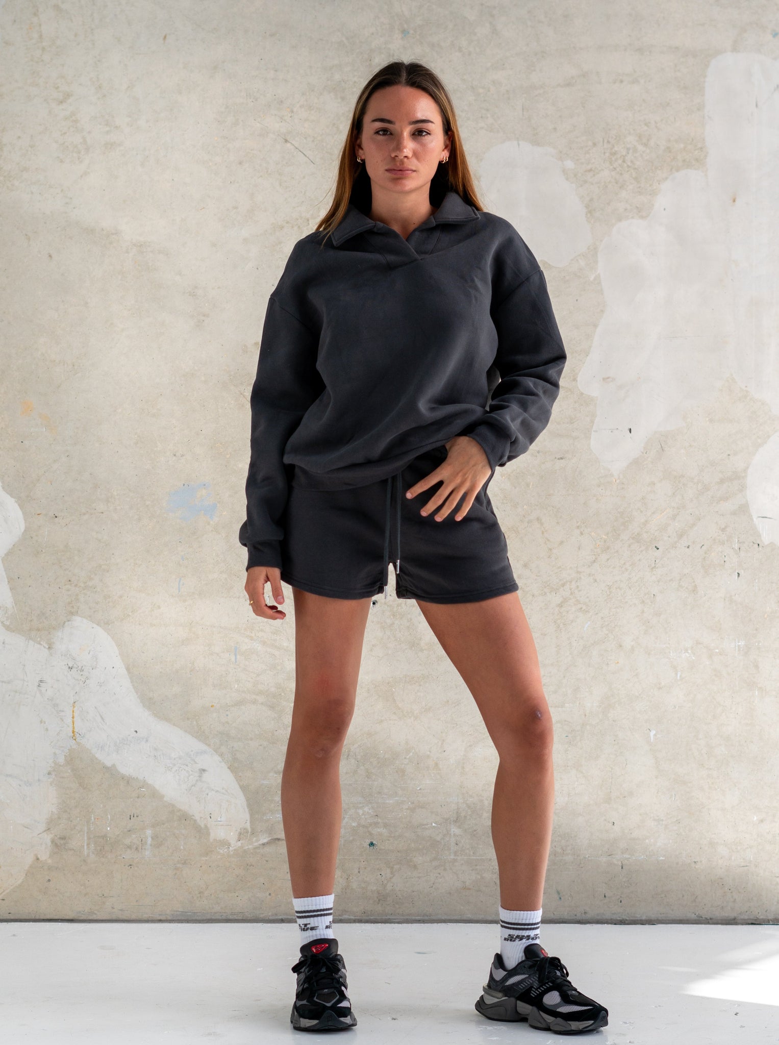 The epitome of luxury loungewear. Featuring a comfortable, oversized fit and stylish collar, this sweatshirt elevates your relaxation game. Pair it with our any of our activewear range or loungewear, mix and match it up bby!